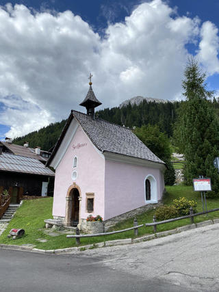 In 1922, when the new road was built, its path crossed the village between the second and the third row depriving some houses of their small lawns. AII these changes, unfortunately, made the prospect of having a sizeable, usable space in what would eventually become Sappada's town center, virtually impossible. In reality, the post-reconstruction growth, Bach's relatively central position in the valley, and the extent of flat land around the village all played major roles in the community's extraordinary expansion. Most of the development took piace South and West of the originai center and was so far-reaching that the Bach village almost merged with the neigh boring Palù. Finally, in 1953, the relocation of the Sappada town hall to the Bach Village conclusively confirmed the role of this community as the urban and civil center of Sappada. The fire spared the chapel of S. Anthony of Padua, also known as Schantantònimaindl or Pòcharmaindl. You can still see this chapel today along the path of the old road. Built in 1726, it is the oldest religious building of Sappada.