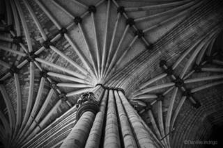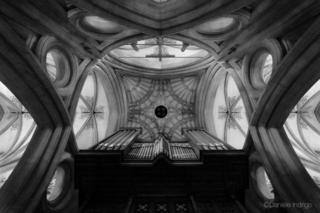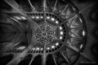Qual è il soggetto di queste fotografie di Daniele Indrigo? Qual è il soggetto in ogni fotografia, ci verrebbe da chiedere. Non basta definire l’atto fotografico come la certificazione di qualcosa che “è stato”, ma bisogna considerare la sovranità del soggetto osservatore sull’immagine osservata; ne consegue che il paradigma “ciò è stato” andrebbe rivisto con “io sono stato” o meglio “io (soggetto) ho visto/fotografato (predicato) ciò (complemento)”. L’immagine che vediamo dentro una fotografia non è il soggetto, ma il complemento; Daniele Indrigo è il soggetto di queste immagini. Io, Daniele Indrigo, sono stato lì e ho visto ciò: perché ciò parla di me. Il ciò sono le architetture di grandi cattedrali gotiche che hanno esaltato la ripresa culturale e figurativa seguita alla crisi altomedievale; il Gotico Internazionale si esprime con le forme allusive, metaforiche e simboliche, legate tra loro da contrappunti, come li definisce Daniele, profondo conoscitore della musica; nel percorrere le navate di questi edifici monumentali sembra di immergersi nelle atmosfere di un salmo Gregoriano, in cui il ritmo è scandito su un tetragramma ideale dall’incedere.