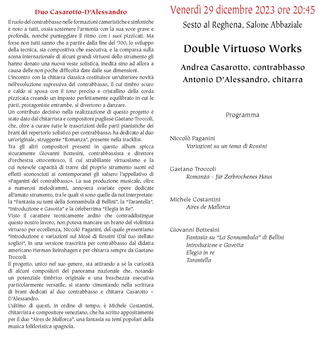 Il graditissimo ritorno a Sesto al Reghena dei maestri Andrea Casarotto al contrabbasso e Antonio D'Alessandro alla chitarra.