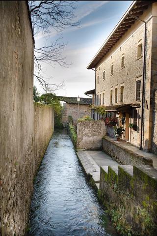 Seguendo la roggia, prosegui sempre dritto lungo via Elisabetta Noja, caratterizzata dalle facciate e dai caratteristici portici sottostanti dei palazzi del tre e quattrocento, che seguono il tracciato della seconda cerchia di mura.