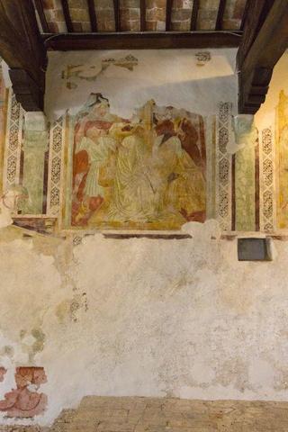Sie wurde für weltliche Zwecke genutzt, was zu einer schweren Verschlechterung des Freskenzyklus führte, der auf das 16. Jahrhundert datiert werden kann und die Innenwände und die äußeren Lünetten des Traufgesimses bedeckt. Das Gebäude aus dem 15. Jahrhundert wurde kürzlich (1982) von der Denkmalschutzbehörde restauriert, mit einem rechtzeitigen Eingriff, der den vollständigen Verlust verhinderte.