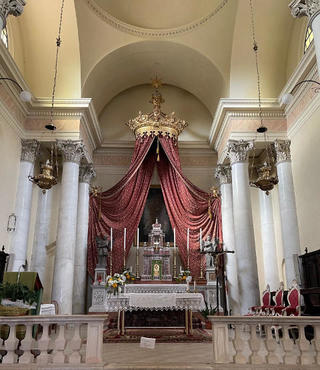 Die Kirche von San Nicolò Vescovo präsentiert sich mit einer majestätischen weißen Fassade aus dem 19. Jahrhundert, überragt von einem Mosaik, das den Schutzheiligen darstellt, mit einem ursprünglichen Bauwerk, das auf das 14. Jahrhundert zurückgeht und anscheinend auf einem bereits bestehenden Kultort errichtet wurde.
