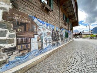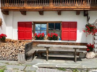 Von besonderem Interesse ist schließlich der Stall-Scheune Beibar Sèffn - s'Chrischtn - s'Khrotars, dessen Fassadenteil vollständig aus Holzbalken gefertigt ist, und zwar vom Boden aus.