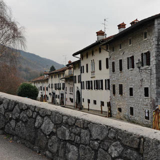 Es handelt sich vermutlich um Gebäude, die Familien kleiner unabhängiger Eigentümer gehören, die sich seit langem bei den ältesten Höfen niedergelassen haben, auf Grundstücken, die vielleicht mit den alten bearzi (Gärten) übereinstimmen. Nach dem Erdbeben von 1976 hat die Wiederaufbautätigkeit das städtebauliche Layout teilweise verändert, insbesondere entlang der Via Nazzaro Sauro. Dennoch sind die Merkmale des Systems der Höfe, die den Kern des ursprünglichen Borgos bildeten, weiterhin erkennbar.