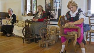 The visitor finds a lively house with its environments: the kitchen, the rooms, the cellar, the granary, the farmyard, the workroom and people performing various tasks with ancient tools: the basket maker (zeâr), the blacksmith (fari), the miller (mulinâr), the grinder (gue), the woman spinning wool (filandere) and the lace makers.