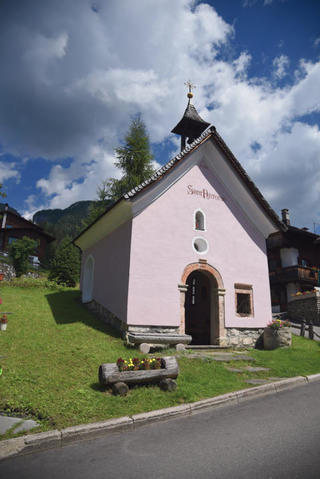 In 1922, when the new road was built, its path crossed the village between the second and the third row depriving some houses of their small lawns. AII these changes, unfortunately, made the prospect of having a sizeable, usable space in what would eventually become Sappada's town center, virtually impossible. In reality, the post-reconstruction growth, Bach's relatively central position in the valley, and the extent of flat land around the village all played major roles in the community's extraordinary expansion. Most of the development took piace South and West of the originai center and was so far-reaching that the Bach village almost merged with the neigh boring Palù. Finally, in 1953, the relocation of the Sappada town hall to the Bach Village conclusively confirmed the role of this community as the urban and civil center of Sappada. The fire spared the chapel of S. Anthony of Padua, also known as Schantantònimaindl or Pòcharmaindl. You can still see this chapel today along the path of the old road. Built in 1726, it is the oldest religious building of Sappada.
