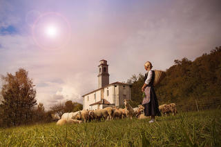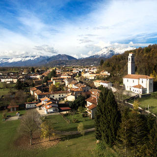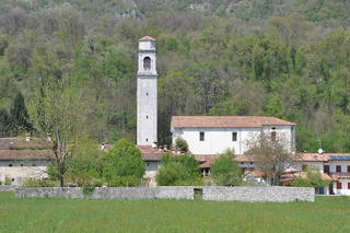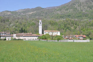 The decentralized position compared to the village is due to the fact that it originally served as a place of worship for the eastern hamlet (while the village Pino, west of the Gleria stream, was served by the chapel of San Girolamo, within the grounds of Palazzo Toppo Wassermann).