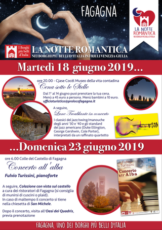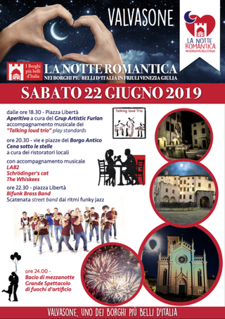 Cene sotto le stelle, sfilate di moda, concerti di tango, quartetti jazz, circo acrobatico, musica anni '40, ma anche concerti all'alba, voci femminili straordinarie: questo e molto altro caratterizzerà La Notte Romantica nei borghi più belli d'Italia in Friuli Venezia Giulia, dal 18 al 23 giugno 2019.