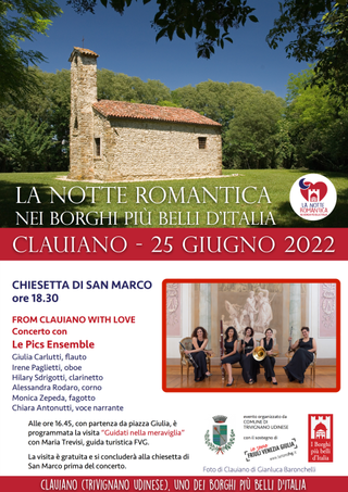 A Toppo un concerto immerso nell’ambiente circostante e in atmosfere antiche; a Polcenigo, il racconto musicale di emozione e amori che trovano nell’estate la loro stagione più intensa; e a Venzone infine, le parole alte di uno dei poeti più importanti della nostra terra: Pier Paolo Pasolini.