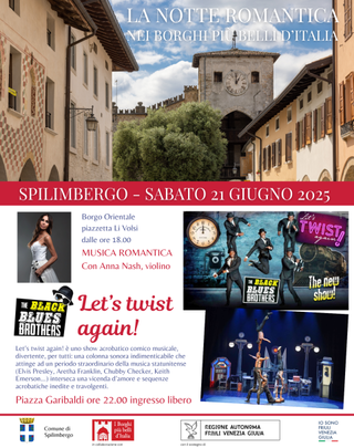 Let’s twist again! è uno show acrobatico comico musicale, divertente, per tutti: una colonna sonora indimenticabile che attinge ad un periodo straordinario della musica statunitense (Elvis Presley, Aretha Franklin, Chubby Checker, Keith Emerson…) interseca una vicenda d’amore e sequenze acrobatiche inedite e travolgenti.