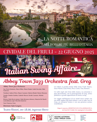Un viaggio nell’eleganza di un sound senza tempo con una delle migliori big band italiane e con la calda voce di Greg, un interprete ironico e con una presenza scenica straordinaria.