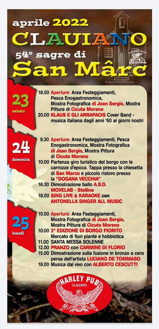 Si ripete per la 54^ volta la tradizionale Sagre di San Marc a Clauiano, uno dei borghi più belli d'Italia in Friuli Venezia Giulia