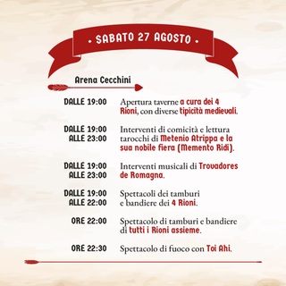 DALLE 19:00 Apertura taverne a cura dei 4 Rioni, con diverse tipicità medievali.