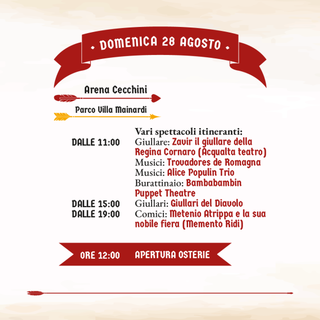 DALLE 11:00 Vari spettacoli itineranti: Giullare: Zavir il giullare della Regina Cornaro (Acqualta teatro) Musici: Trovadores de Romagna Musici: Alice Populin Trio Burattinaio: Bambabambin Puppet Theatre