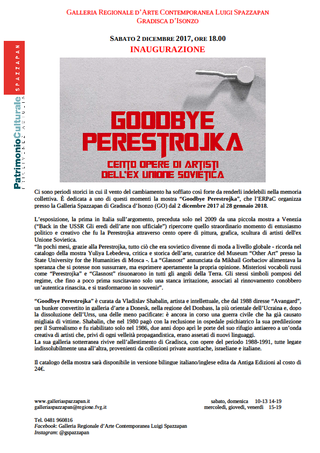 Ci sono periodi storici in cui il vento del cambiamento ha soffiato così forte da renderli indelebili nella memoria collettiva. È dedicata a uno di questi momenti la mostra “Goodbye Perestrojka”, che l’ERPaC organizza presso la Galleria Spazzapan di Gradisca d’Isonzo (GO) dal 2 dicembre 2017 al 28 gennaio 2018.
