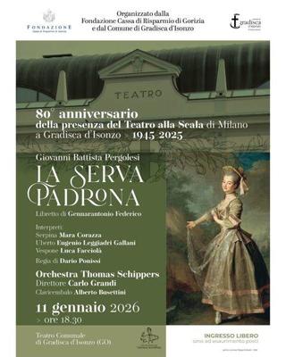 Domenica 11 gennaio 2026 il Nuovo Teatro Comunale di Gradisca d'Isonzo ospita "La serva padrona" di Giovanni Battista Pergolesi, una delle opere buffe più celebri e amate, considerata un punto di riferimento nella storia del teatro musicale italiano.