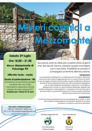 Sabato 29 luglio dalle ore 18.00 alle ore 21.00, un'escursione sotto le stelle a Mezzomonte di Polcenigo