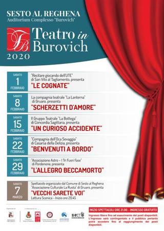 Torna anche quest'anno l'attesissima rassegna di teatro amatoriale in Burovich che ha sempre riscosso grande consenso e presenza di pubblico. Un appuntamento settimanale che allieterà il mese di febbraio, ad ingresso gratuito e che si concluderà sabato 7 marzo.