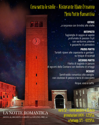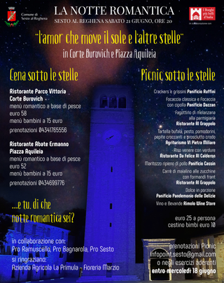 - per la Cena Romantica negli altri ristoranti, in Corte Burovich e Piazza Aquileia, consulta la locandina.