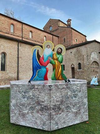 Composto da figure a grandezza naturale rivestite su entrambi i lati dallo splendore di ori e smalti di vetro veneziano colorati, in occasione dell'anno Giubilare 2025 è stato diviso in due Borghi più belli d'Italia.