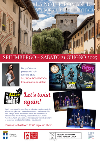 Let’s twist again! è uno show acrobatico comico musicale, divertente, per tutti: una colonna sonora indimenticabile che attinge ad un periodo straordinario della musica statunitense (Elvis Presley, Aretha Franklin, Chubby Checker, Keith Emerson…) interseca una vicenda d’amore e sequenze acrobatiche inedite e travolgenti.