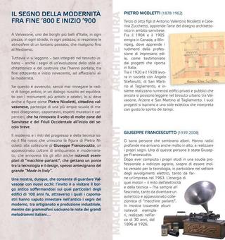 Una mostra che consente di guardare Valvasone con nuovi occhi: l’invito è a visitare il borgo antico soffermandosi sui quei particolari degli edifici di 100 anni fa, attraverso i quali i capomastri hanno saputo innestare nell’antico i segni del moderno, tra artigianato e produzione industriale, mentre dai grammofoni uscivano le note dei grandi melodrammi italiani…