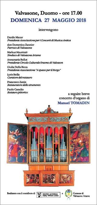 Presentazione della brochure "Gli organi di Valvasone" in lingua inglese, tedesca e nuova edizione in italiano con breve concerto di Manuel Tomadin