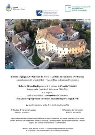 A conclusione dei lavori della 51^ Assemblea Ordinaria del Consorzio Castello Fvg, Roberto Pirzio Biroli presenterà il volume di Claudio Visintini "Restauro del Castello di Valvasone 1991-2013".