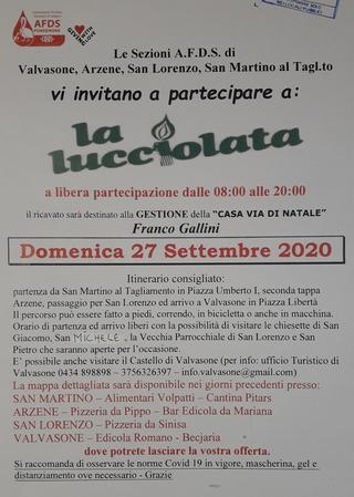 Le sezioni AFDS di Valvasone, Arzene, San Lorenzo e San Martino al Tagl.to invitano alla Lucciolata a libera partecipazione. Il ricavato sarà destinato alla gestione della "Casa Via di natale - Franco Gallini".