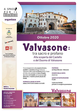 L'associazione A Spasso per il Borgo vi accompagnerà alla scoperta di storia, aneddoti e curiosità del Borgo Antico di Valvasone: dalla castità del Duomo del SS. Corpo di Cristo, che custodisce la Sacra Tovaglia, allo sfarzo del Castello con le preziose sale affrescate e il teatrino privato più piccolo d’Italia.