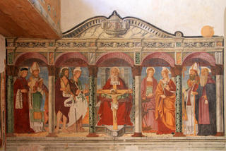 A rendere più splendida la "cappella" consacrata nel 1497, ornata di tre altari, nella prima decade del Cinquecento si ordinò a Pietro da Vicenza di allietarne le pareti con una serie di affreschi devozionali e di fornire anche una pala per l'altar maggiore, nel mentre, già sulla fine del secolo precedente, s'era commesso ad un artista per noi anonimo l'intaglio di un polittico comprendente, con le figure (conservatesi) dei SS. Paolo e Antonio Abate, senza dubbio anche un perduto S. Pietro.