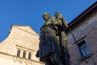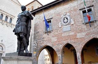Da bi se spomnili ustanovitelja mesta, Caio Giulio Cesare, je bila leta 1935 pred glavno fasado postavljena bronasta statua, kopija marmorne statue iz Trajanove dobe, ki se nahaja na Kapitoliju v Rimu.