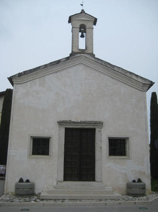 Prvi dokument, v katerem je omenjena, je tisti, ki se nanaša na gradnjo cerkve S. Girolamo v gradu leta 1347. Prenova je bila izvedena leta 1591, kar je zapisano v napisu na prekladi, vključno z gradnjo zvonika na strehi.
